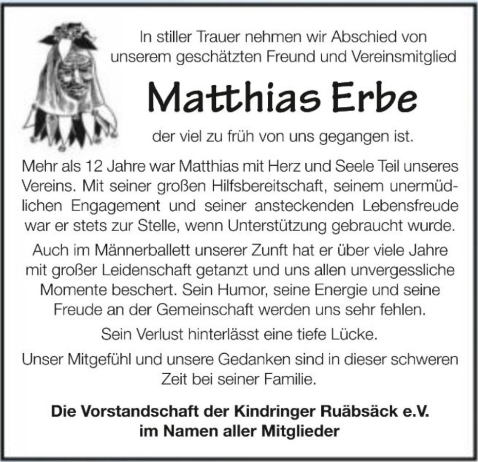 Matthias Erbegestorben am 19. Januar 2025